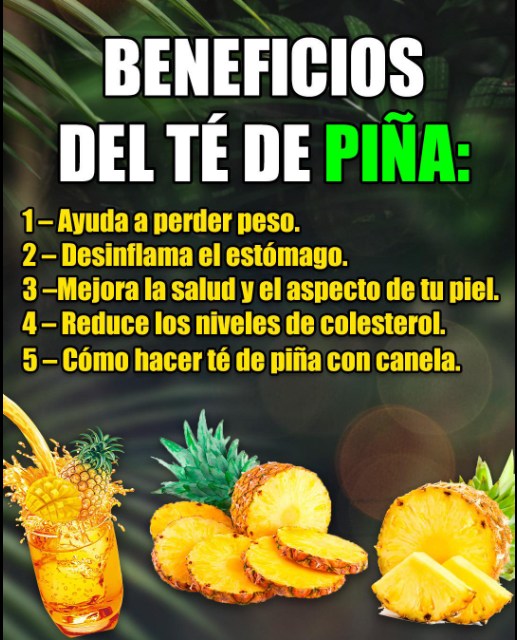 El té de piña es una bebida natural, deliciosa y llena de beneficios para el cuerpo. Desde limpiar tu organismo hasta ayudarte a bajar de peso y reforzar tu salud, esta infusión tropical puede convertirse en tu mejor aliada diaria. Aprovecha lo que la naturaleza te ofrece y dale a tu cuerpo el cuidado que se merece.